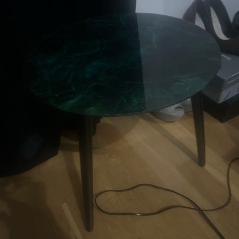 Fineste borde i massiv marmor m sort jernstel. Bordene er brugt som natbord, men kan også bruges som sidebord eller lign. Prisen er for dem begge.