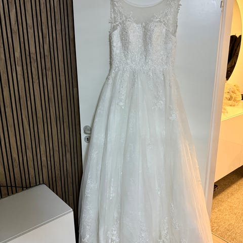Flot brudekjole - brugt en gange - byd ! Højste bydende får kjolen. Der står ingen størrelse - men den er nok M eller L eller one size