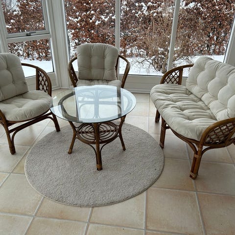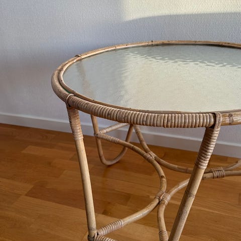 sæt bambus sofabord og stole med glasplade og flet