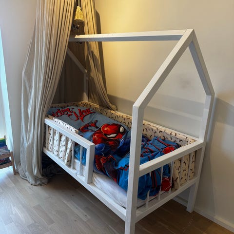 Bemærk der medfølger ikke nogen madras - vi købte en super lækker madras til den i sin tid (se billede - den var ret stor - men lækker) som nu er fulgt med til ny seng.
