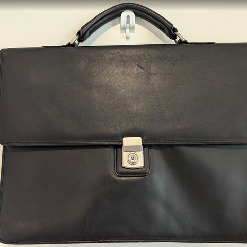 Anden håndtaske, andet mærke, slangeskind, 2 store tasker/pc mapper i sort kalveskind med henholdsvis slangeskind og præget lak som klap/overslag.
