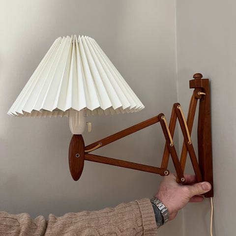 Original le klint sax lampe i teak. En plastik bøsning trænger til udskiftning og skærmen er godt brugt - deraf den lave pris