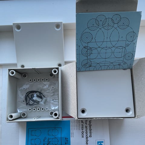 LK mix-box multi installationsboks stænktæt LK. 100F5004 til el-installationer. Mål 230x115x67 mm. Sættet omfatter plastkapsling med aftageligt låg, gennemføringer i siderne. Der medfølger skruer og smådele til montering samt brugs- og monteringsvejledning på dansk med måltegninger og eksempler på anvendelse. Velegnet til samlebox eller monteret med stikkontakter for løs stikkontakt box på gulv mm. Nemt materiale at arbejde i efter medfølgende skabelon. UBRUGT I ORG. EMBALLAGE, HELT NY.