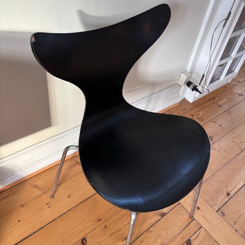 Smuk klassiker fra Arne Jacobsen i lyst træ. Fremstår som ny har aldrig været brugt blot stået til pynt. Ben i krom.