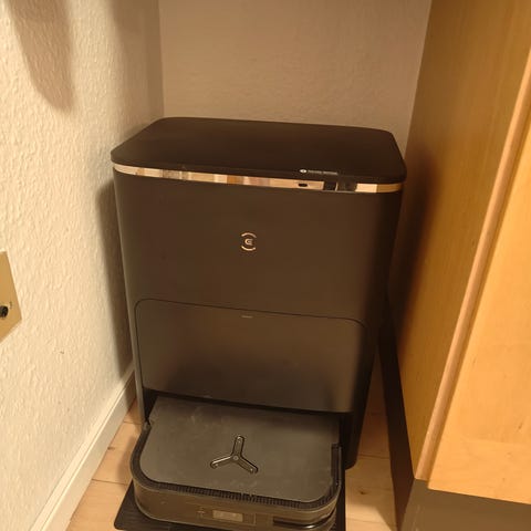 Ecovacs robotstøvsuger med tilbehør. Robotten leveres med tilhørende ladestation/selvtømmende station samt et større sæt ekstra tilbehør, herunder moppepuder, sidebørster, poser og filtre. Enheden er rund og egner sig til automatisk støvsugning og gulvvask i hjemmet. Robotstøvsugeren kører selv på gulvet og vender tilbage til basen for opladning, rengøring af mopper og tømning. Passer til brug på hårde gulve og tæpper. Kan komme i Google Home.