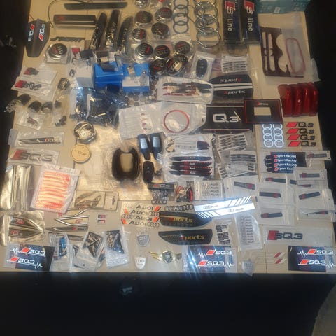 Her er en masse LED ting til bilen. Der er LED ringe til forruden ved bilen, som er i krom og hvid lys, når de er tændt. Så er der til dør paneler, hvor det blinker og skifter farve i panelerne. Så er der sports Led lys og LED i. Så er det til dørene, hvor der er forskellige logoer, som man kan se. Både med S-linen, med Audi, Gold og en blå Audi. Man kan vælge at købe alle Audi. man kan også købe enkeltvis, så skal man bare spørge om prisen, men hvis man køber alt, så er det hele samlet for 2.000. det gælle også alle dem på de andrag foto