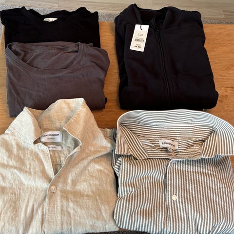 Bluse, Trøjer, Forskellige , str. 176, Blandet tøjpakke. Str M. Strik cardigan fra Outfitters Nation, to bluser fra Lindberh og Your turn og 1 T-shirt fra bl.a. Jack and Jones. (Den blå er solgt) Samlet for 140,-