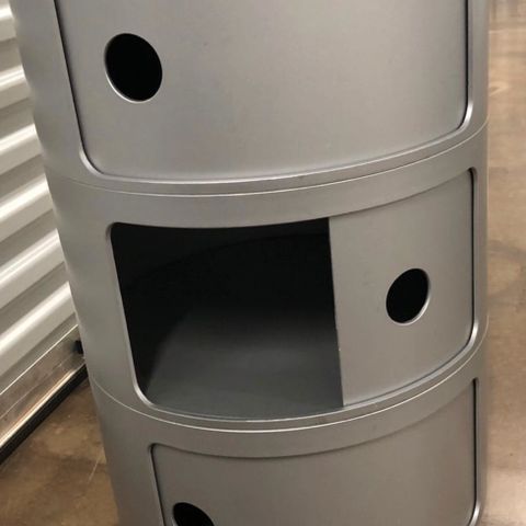 Kartell Componibili opbevaringsmodul i rund form med to rum. Modulet er fremstillet i plast og har skydelåger med runde greb. Farven fremstår som lys/hvid. Egnet som lille opbevaringsmøbel, sengebord eller sidebord i stue, soveværelse eller entré. Kan placeres fritstående op ad væg eller ved siden af sofa og stol til opbevaring af mindre genstande.