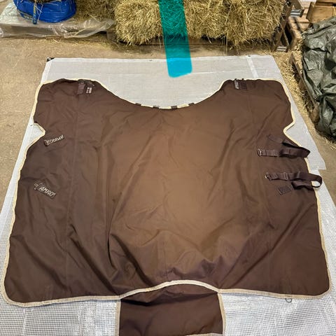 Amigo dækken str. 125 (5,9). Dækkenet er sort-brunt lidt solbleget 250g. Reparation på yderside og lidt små rifter på inderside, ses på billederne. Ellers flot og velholdt. Nyvasket