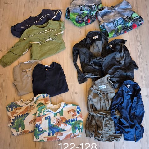 2 sweat shirt- 2 cowboy shorts overall - 2 sweat sæt - 2 par sko 17/18 - 2badebukser med bleer - 2 strik køredragt - 2 bamsedragte - 3 cardigan - 2 bomulds sæt.