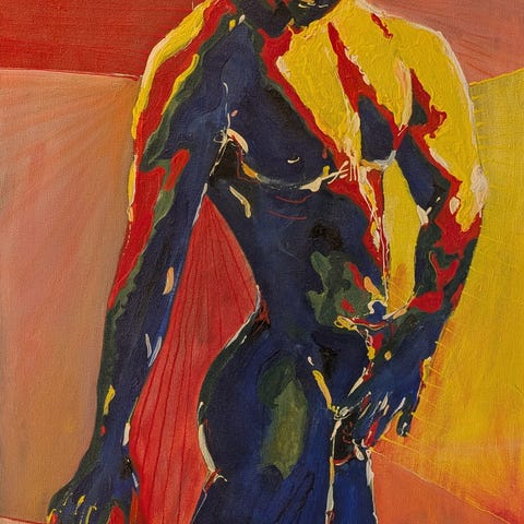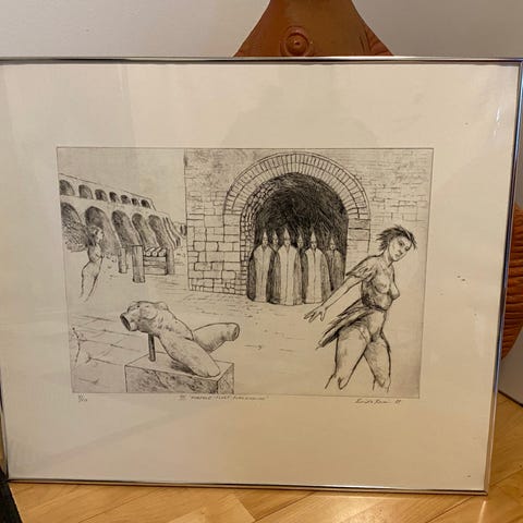 Tegnning af ANDY LI . Fra 1964, I GLAS OG SORT TRÆRAMME. 53x 72 cm med hænder.
