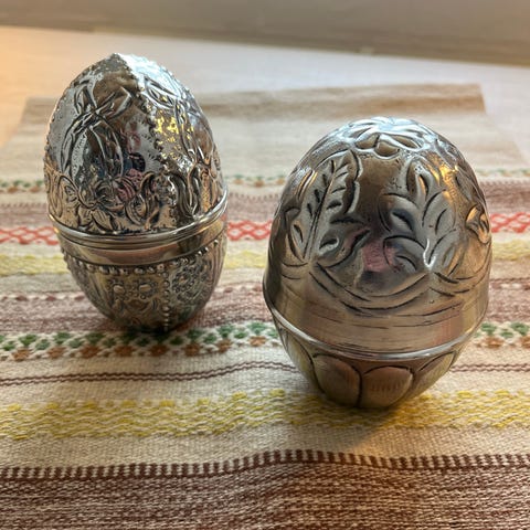 Påskeæg i "hamret sølv", metal