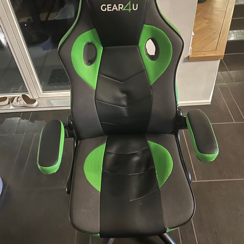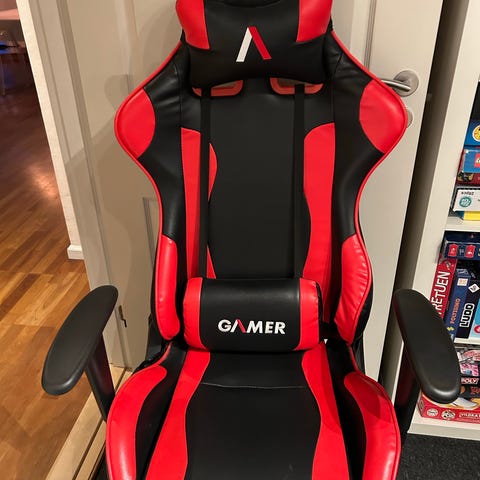 Gamingstol kontorstol i sort og blå kunstlæder. Ingen slid eller huller