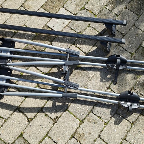 Toyota Avensis WGN tagbøjler i sølvfarvet metal med sorte plastfødder. Sættet består af to tværgående tagbøjler beregnet til montering på Toyota Avensis stationcar (WGN). Maksimal belastning er angivet til 100 kg (220 lbs). Velegnet som basis for montering af tagboks, cykelholder eller andet taglastsystem, der passer til denne type tagbøjler. Leveres med monteringsdele som vist på billederne.