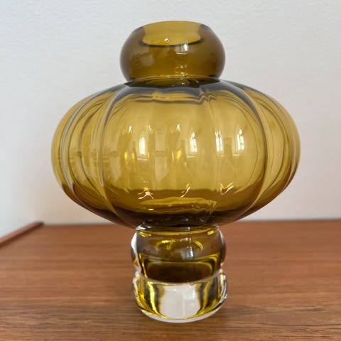 LOUISE ROE Balloon Vase 01 er en ikonisk vase designet af Louise Roe. Vasen er fremstillet af mundblæst glas, hvilket giver vasen et skulpturelt og unikt udtryk, som understreges af det runde formsprog og legende kurver. Vasen er en skulptur i sig selv og fungerer perfekt både med eller uden blomster.
