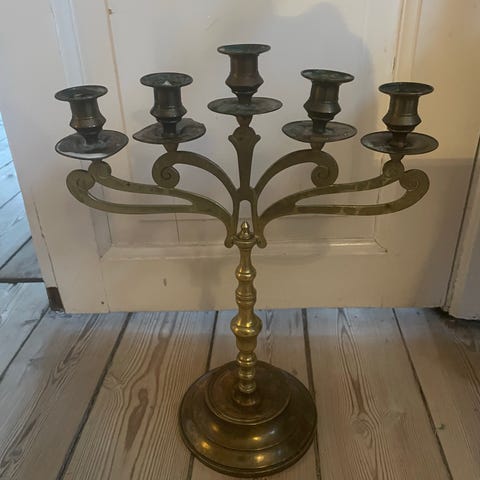 lysestage i messing (24 karat guld) med 4 arme. Klassisk, symmetrisk design til fyrfads- eller stagelys afhængigt af størrelse på lyseholdere. Overfladen er i messingfarvet metal med rund fod, der giver stabilitet på bord eller hylde. Egnet som borddekoration eller stemningslys i stue, spisestue eller entré.