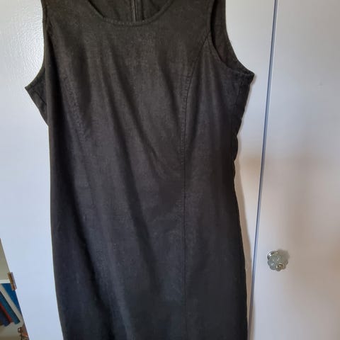 Lækker festkjole fra Jensen str. 48. Bm 59x2, længde 97 cm. Grå med sort glimmer krave. I det lækre materiale Tencel. Brugt 1 gang!