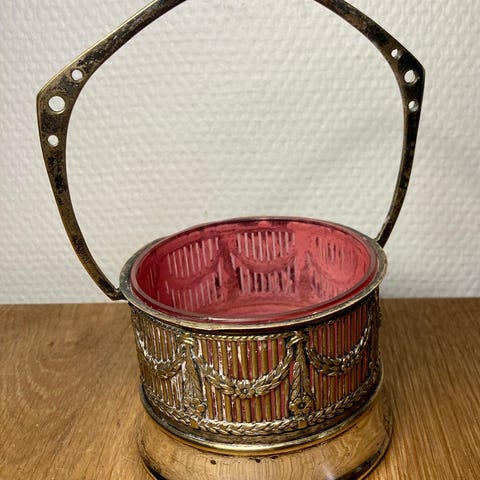 Ukendt mærke sølvfarvet sukkerskål med låg i metal