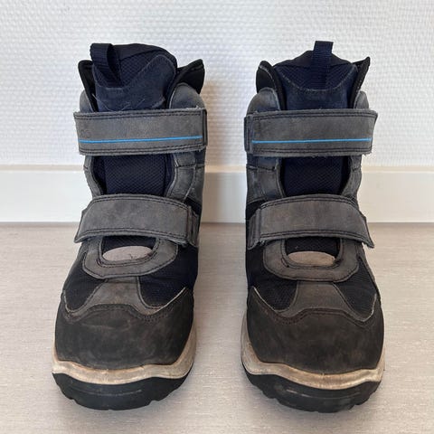 PAX børnestøvler i str. 39 til unisex. Støvlerne er sorte med snørelukning og kraftig gummisål med mønster for bedre fodfæste. Overdelen fremstår i en kombination af glat og ruskindslignende materiale. Velegnet som hverdagssko eller til udendørs brug i køligere vejr.