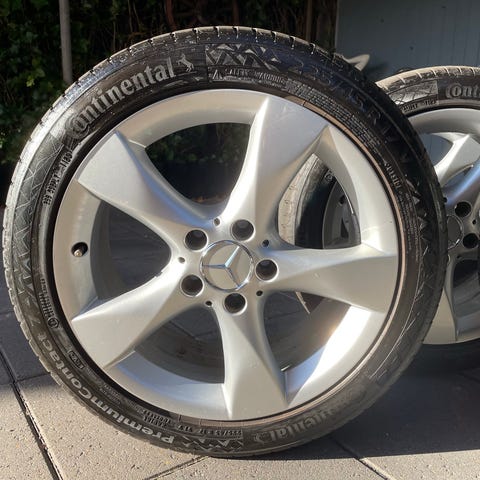 4 stk. Mercedes 17” fælge + dæk sælges. 225/45/R17. De har siddet på en Mercedes C-klasse. Dækkene er nedslidte og trænger til at blive skiftet.