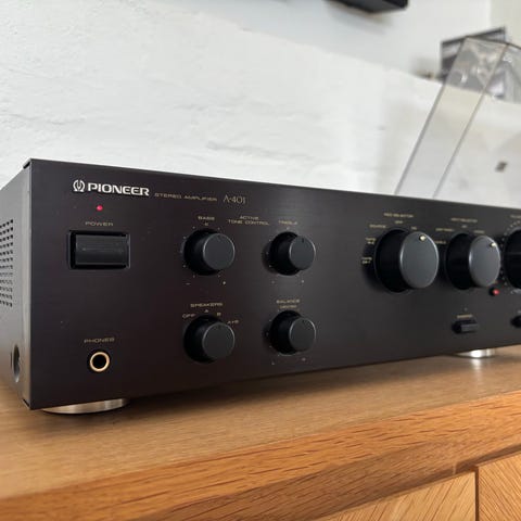 Pioneer A-77X integreret forstærker i sort finish. Kraftig stereoforstærker med frontbetjening til volumen, balance og tonekontrol samt flere ind- og udgange til tilslutning af forskellige lydkilder som f.eks. cd-afspiller, tuner og båndoptager. Kan trække de fleste højtalere, spiller sindsygt godt. Kan evt. leveres imellem Vig og København