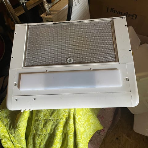 Hvid vægmonteret enhætte med intern motor, brugt i ca 3 år, er kun skiftet pga ny større kogeplade, virker som den skal.
