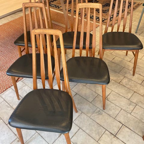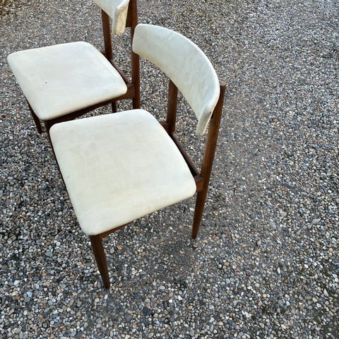 To af stolene er intakte - de to andre har vidst fået fugt fineren har givet sig på ryglænene.