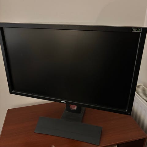 BenQ XL2411Z skærm på 24" i sort. LCD-monitor med justerbart stativ. Velegnet til brug med stationær computer, f.eks. til kontor- eller hjemmebrug. Skærmen har standard rektangulært format og tilsluttes via de porte, der findes på bagsiden (se billeder for detaljer).