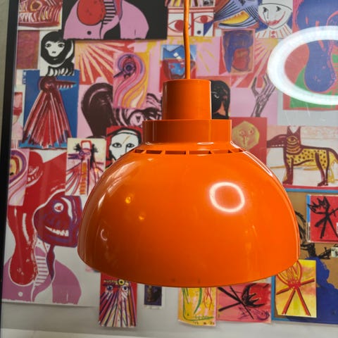 Der er isat ny sort fatning og sort ledning på ca 2 meter på den beige. Den røde har original brun bakelitfatning og kort rød ledning. Begge fungerer upåklageligt med pære med stor sokkel.