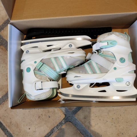 Skøjterne er brugte, men uden nævneværdige tegn på slid.