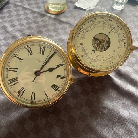Ur og barometer er 50 år gamle fra de blev købt.