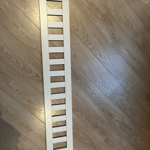 Sebra sengehest med puder i beige. Sengehesten består af sammenhængende, polstrede puder, der danner en blød kant langs sengens side. Den kan bruges som beskyttelse i børneseng eller tremmeseng for at skabe en blød afskærmning mellem barn og sengekant. Farven er neutral beige, og sengehesten har stropper til fastgørelse efter behov. Materialet fremstår som blødt tekstil med fyld i hver pude.