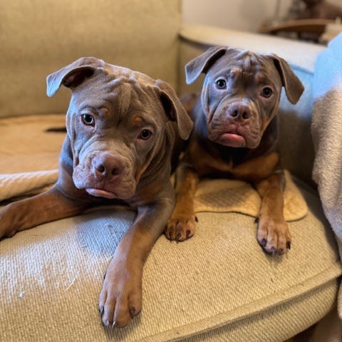 Hvalpene er sunde, sociale og vokser op i hjemlige omgivelser med masser af kærlighed og kontakt også med børn.