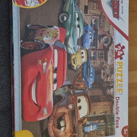 Disney Pixar Cars puslespil med motiv fra Cars-universet med Lynet McQueen og andre biler. Puslespillet består af brikker i papkarton med farverigt motiv. Velegnet til børn fra 3 år og opefter, som kan lide figurerne fra Cars-filmene og at lægge puslespil.