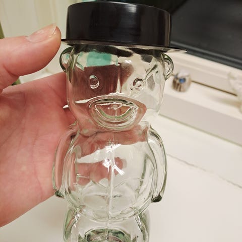 En rigtig smuk kiksespand/krukke I udsmykket glas.