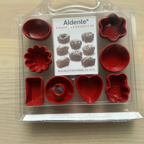 24 mindre forme Ø 5,5 cm og 12 lidt større Ø 6 cm, formentlig til bagning af petit four ell kanapeer?
