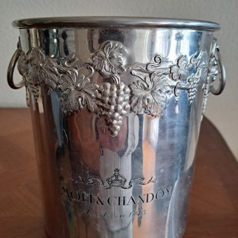 Gammel fransk Champagnekøler fra Pommery, i aluminium, med logo på begge sider.