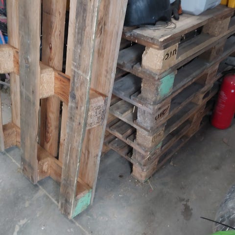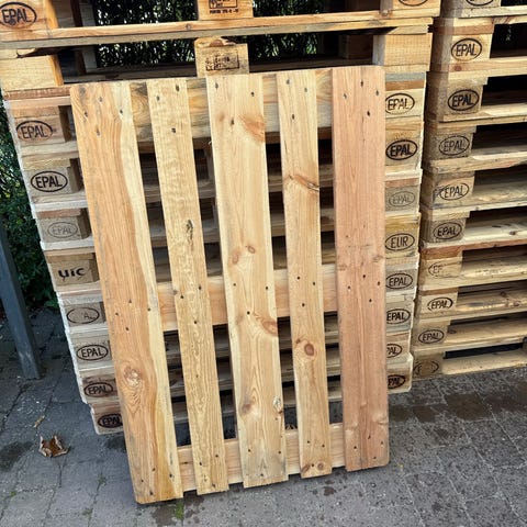 EPAL EUR paller i træ. Standard europaller egnet til opbevaring og transport. Pallerne er mærket med EPAL og EUR-stempler og kan anvendes til lager, fragt eller forskellige gør-det-selv formål som møbler og opbevaringsløsninger.