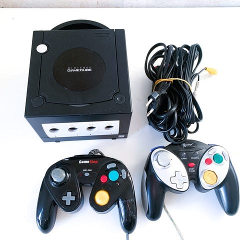 Nintendo GameCube i sort med 15 spil, 3 controller og HDMI adapter
