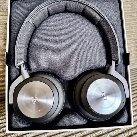 Bang & Olufsen Beoplay H9i hovedtelefoner er trådløse over-ear høretelefoner med aktiv støjreduktion. Modellen ses her i sort med sølvfarvede ørekopper og polstret hovedbøjle. Ørepuderne er bløde og omsluttende for øret, markeret med L og R indvendigt. Hovedtelefonerne leveres med original æske og blød opbevaringspose med snørelukning. Velegnet til brug med kompatible trådløse enheder til musik og lydafspilning i hverdagen og på farten. Kvittering haves. Ikke brugt særligt meget.