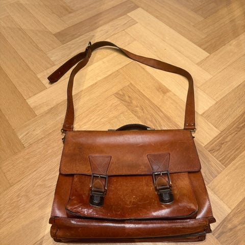 Smuk og solid lædertaske i kraftigt, ægte læder med flot patina. Perfekt som arbejdstaske, dokumentmappe eller stilfuld hverdagstaske.