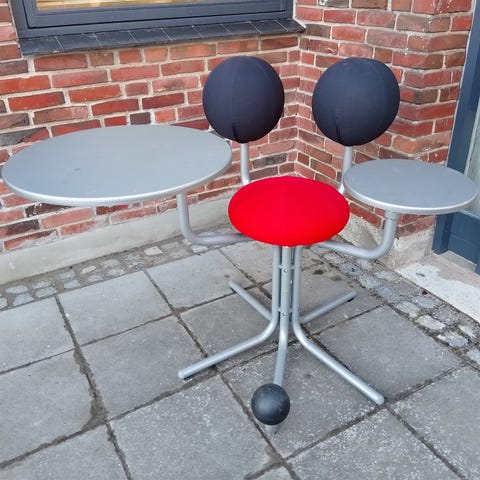 Arbejdsstol. Ergonomisk fra Globe Consept af Peter Opsvik. Sølvgrå stel med sorte kugler.