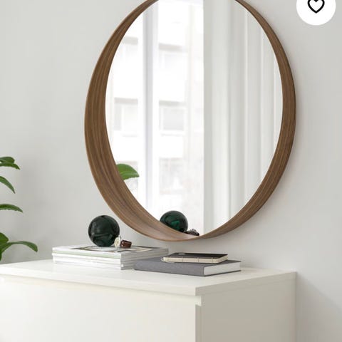 IKEA STOCKHOLM rundt spejl med bred træramme i kastanie finer. Velegnet til ophæng i entré, stue eller soveværelse som vægspejl eller dekorativt element i indretningen.