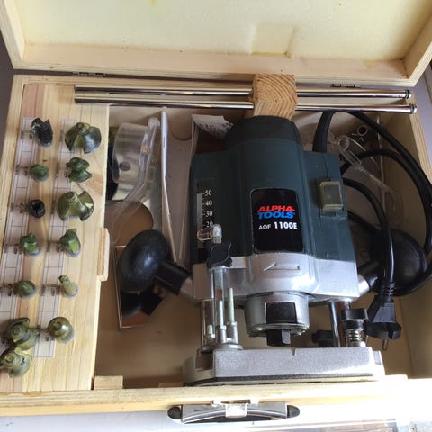 CMT 2400W fræser med fræserbord m, hævesænk funktion, bagslag stop, spåndsuger udtag. Klargjort til låge lys i bund på hjul. Kan evt. Laves til at påsættes på bænk til Dewalt rundsav så bordet bliver længere og påføres tænd/sluk stik, hvilket var påtænkt. Aldrig brugt da pladsen har været for lille. Prisforslag kr. 7500
