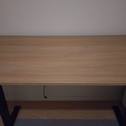 Super flot hæve sænkebord fra DPJ Workspace med bordplade i valnød farve og sort stel/stativ.