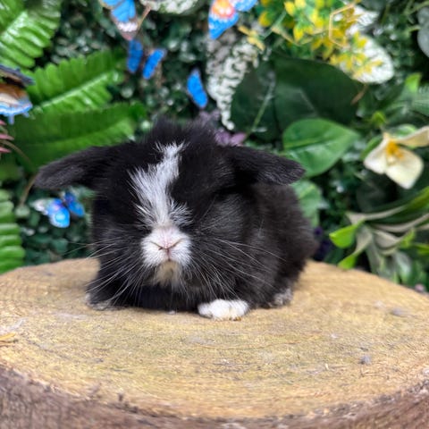 Smukkeste Minilop/ lionlop pige efter tyske linjer. Hun er vandt til at være i hænder dagligt siden hun var helt lille, og vil egne sig godt til både kæl og avl. Man vil først kunne se om hun bliver langhåret når hun er 4 uger. Mor er lionlop far er Minilop.