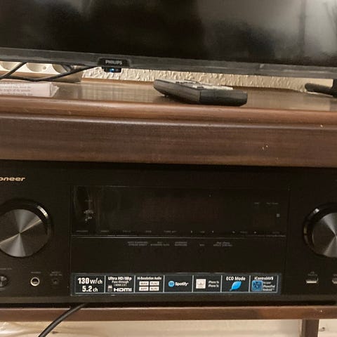 Pioneer SC-LX79-K surround receiver i sort finish. Modellen understøtter op til 11.2 kanaler og er udstyret med flere HDMI-indgange og -udgange, analoge og digitale lydindgange samt højtalerterminaler til flerkanalsopsætning. Enheden har fronttilslutninger, herunder USB og hovedtelefonudgang, samt netværksfunktioner som blandt andet Bluetooth (jf. mærkninger på fronten). Velegnet som central enhed i et hjemmebiograf- eller flerkanals-lydsystem. 9x250 watt.