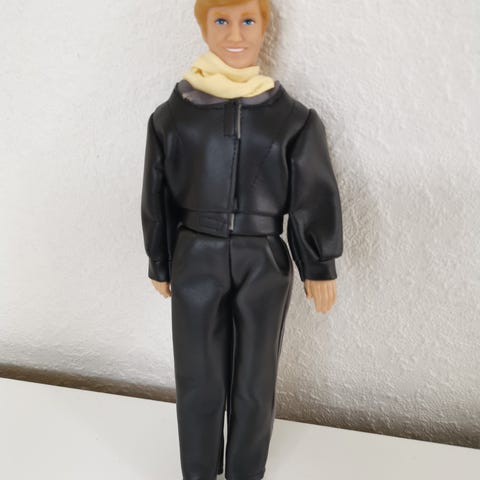 SuperModel dukke mand på ca. 30 cm. Dukken er iført sort jakkesæt med skjorte og butterfly. Arme, ben, talje og ankler er bevægelige, så dukken kan stilles i forskellige positioner. Velegnet som legetøjsfigur i rolleleg og som tilbehør til andre Barbie- og modedukker.