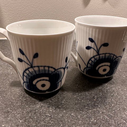 2 Royal Copenhagen Blå Mega Riflet Krus.