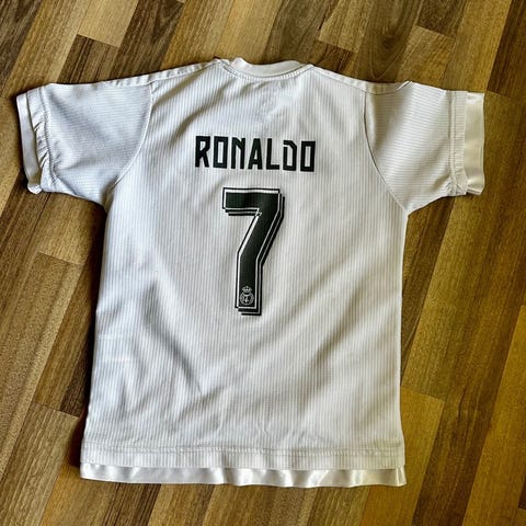 Denne fodboldtrøje repræsenterer en æra, hvor Ronaldo var i sin absolutte prime i Madrid. Den hvide farve, de sorte Adidas-striber og det ikoniske nummer 7 på ryggen – det er symboler på en periode, hvor Real Madrid målte succes i rekorder og trofæer. Slidet foran fortæller samtidig, at den har levet et liv – og det klæder en trøje fra en spiller, der aldrig sparede sig selv.